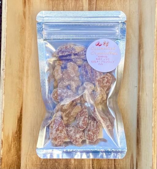 「オーガニックナッツのコーヒーキャラメリゼ」は、ピーカンナッツ、クルミ、アーモンドを、エスプレッソと甜菜糖でキャラメリゼしたもので、スペシャルティコーヒーの深い香りがしっかり感じられる、贅沢な味わいです。